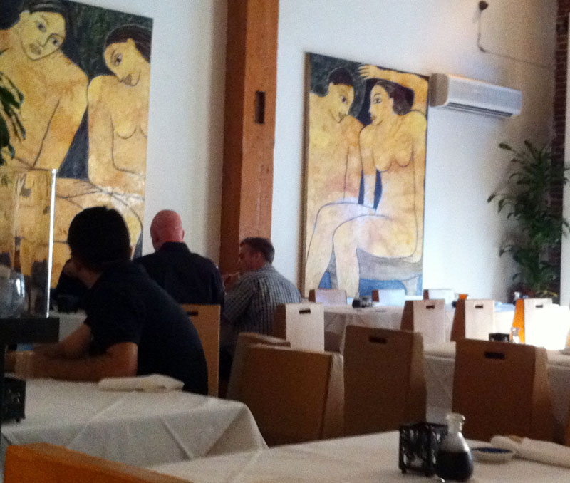 这个店很漂亮, 椅子布置很特殊. BoBo记得帐单送上来还有个小纸片强调要给足帐单全额小费, 可是服务很普通 Waitress甚至可以说略冷淡没什么笑容,