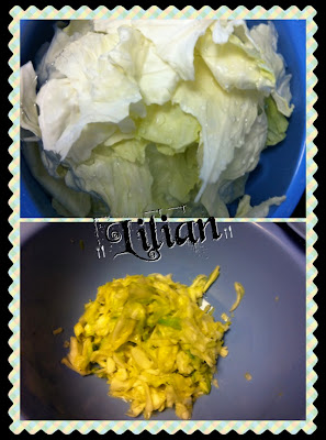 - 將高麗菜瀝乾。同時可以準備醃料。
