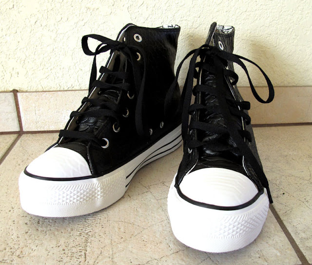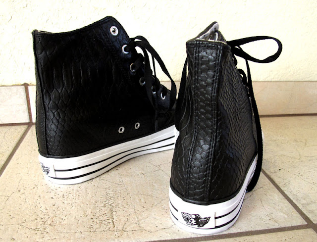 但是被燒到的心又怎麼會如此就止息,這中間不斷的研究各種內藏鞋跟的鞋子可是都不好穿. 跟菜頭討論後, 菜頭說她的五雙中就是豹紋尺寸特別小其它沒有這個問題. 所以BoBo決定再給一次機會. 但是Karmaloop除了貴爆的鉚釘款有尺寸其他都斷碼.