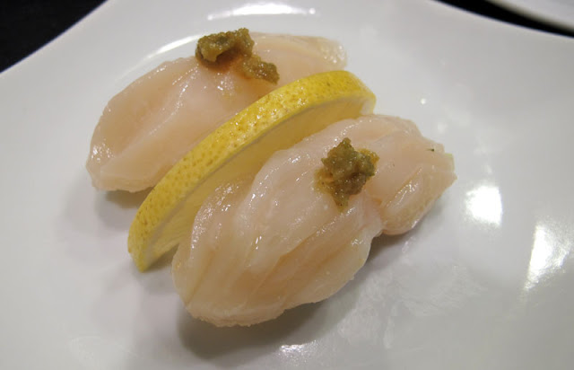 干貝壽司,師父吩咐不用在沾醬油上面的柚子醋已經很有味道了..