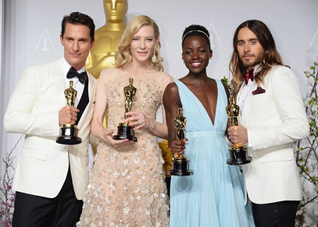 最佳男配則由傑瑞德•萊托(Jared Leto),這名樂隊的靈魂主唱,橫跨音樂與電影多領域的他,如今憑藉在電影《達拉斯買傢俱樂部》(Dallas Buyers Club)中雌雄莫辯的驚艷表演贏得了奧斯卡的認可;首次當演員的露皮塔•尼永奧( Lupita Nyong’o)憑藉在《為奴十二年》(12 Years A Slave)中的完美演出,一舉拿下最佳女配。
