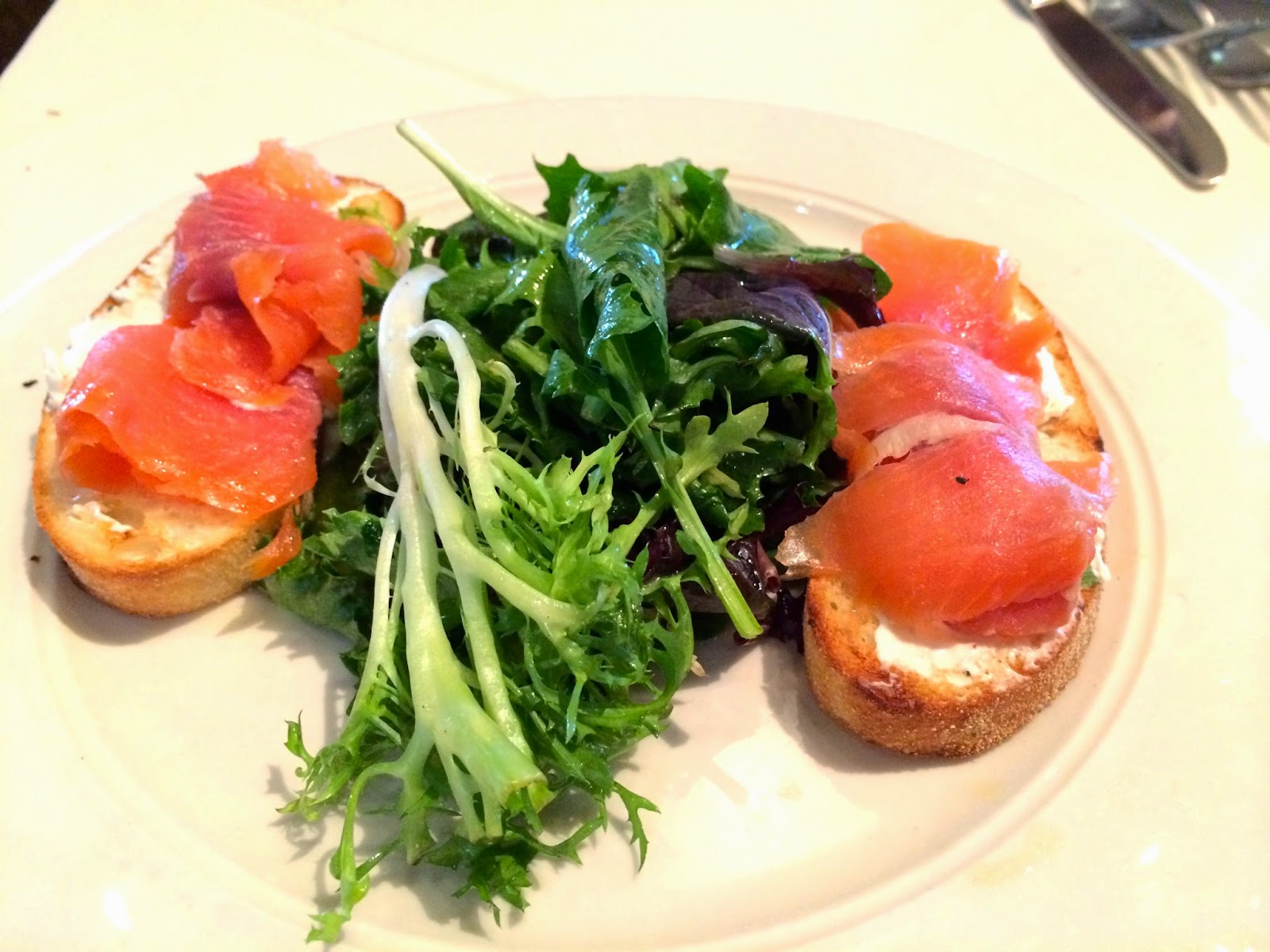 這醃製三文魚配上剛烤好的義大利麵包還有奶油起司