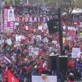 洛杉矶联合学区(Los Angeles Unified School District)数以千计学校服务人员在教师力挺下,21日起为薪资问题展开3天罢工。Image Via Twitter