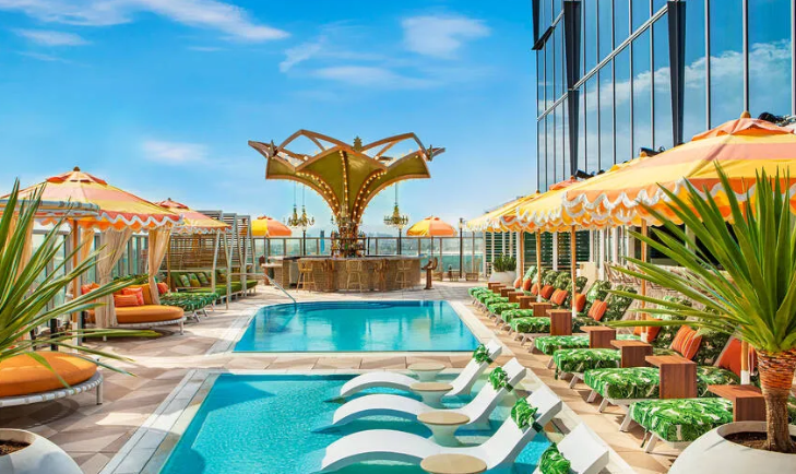 隨著夏季來臨,這裡重新推出了狂野西部泳池派對和交易集市系列活動。從5月25日星期天開始,每週都有本地攤販快閃市集、牛仔燒烤、美味調酒、鄉村DJ Short Shorts的音樂表演,以及Fleetwood Mac致敬現場演出。記得穿上你的牛仔靴,隨著夕陽西下,在城市上空盡情狂歡。入場免費,但如果是團體來訪並想奢華享受,還可以預訂價位從900美元起的包廂。