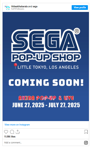 SEGA快閃店將登陸小東京的 Akihabara (6/27-7/27)🙌