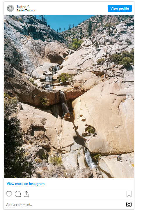 這個隱藏在 塞奎亞國家森林Sequoia National Forest(美國第二古老的國家公園)中的 七茶杯峽谷(Seven Teacups Canyon) 步道,帶領冒險者抵達一系列壯觀的光滑花崗岩盆地,這些岩盆經過 Dry Meadow Creek 多世紀的流水雕刻而成。這些天然的「茶杯」水池,各自由瀑布注水而成,水深足以暢游一番,周圍是高聳的內華達松與壯麗的峽谷峭壁。