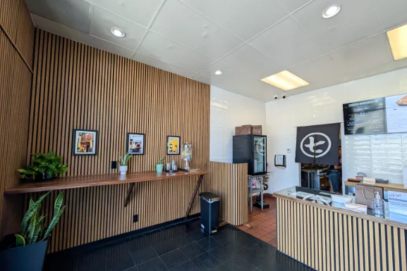 Tonkatsu Marushichi 的另一特色是 豬排中心保留淡粉色,而非一般豬排常見的全白色。這源自於低溫長時間烹調的方式,使豬排口感更柔嫩並保持肉汁。托倫斯分店以 外帶為主,店內座位極少,僅在吧檯邊設有幾張椅子,方便想現場享用的客人!!