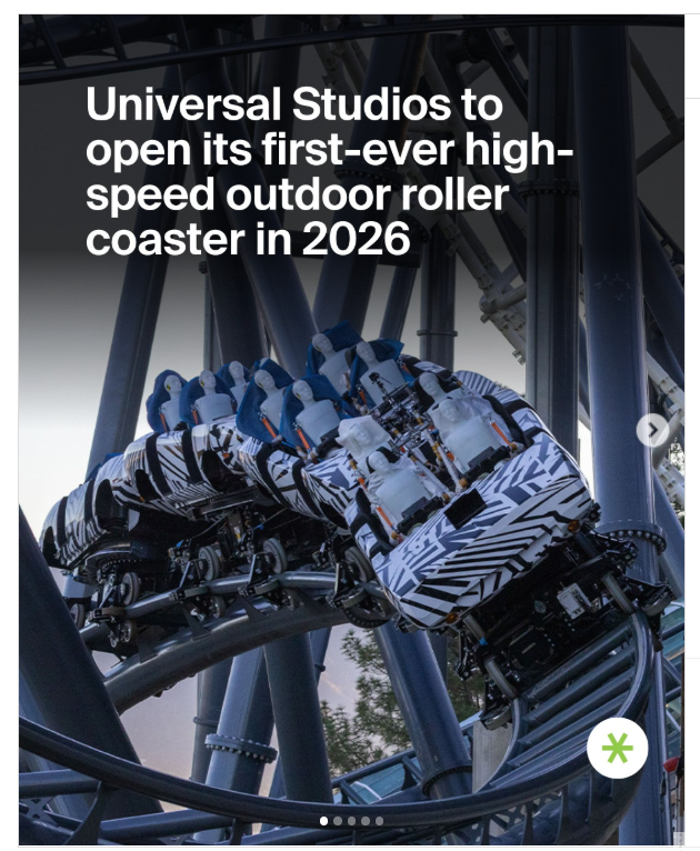 根据新闻稿,新过山车将提供「个别车厢的 360 度旋转体验,沿着长达 4,100 英尺的精巧轨道运行,相当于近 12 个美式足球场的长度,而且轨道采用降噪技术打造」。