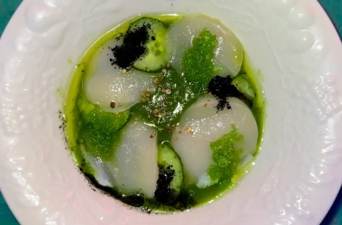 Scallop aguachile at the Hummingbird. Nicole Fellah